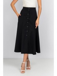 Стильная классическая юбка-годе на поясе, застёгивается на пуговицы спереди, в боковых швах карманы. По боку в поясе вставлена резинка. Свободная в бёдрах.