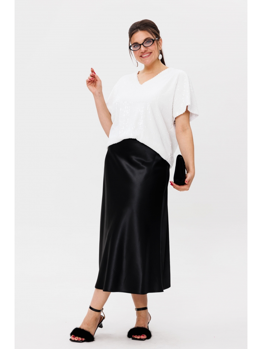На модели жилет 1433, черная рубашка 1203, блузон из пайеток 1522 и белая рубашка 1375.