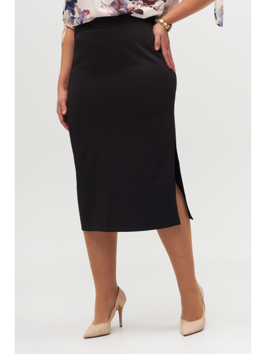 Юбка женская, силуэт карандаш, длина миди. По спинке талиевые вытачки и потайная молния в среднем шве, пояс - на петлю пуговицу. В левом боковом шве игривый разрез.