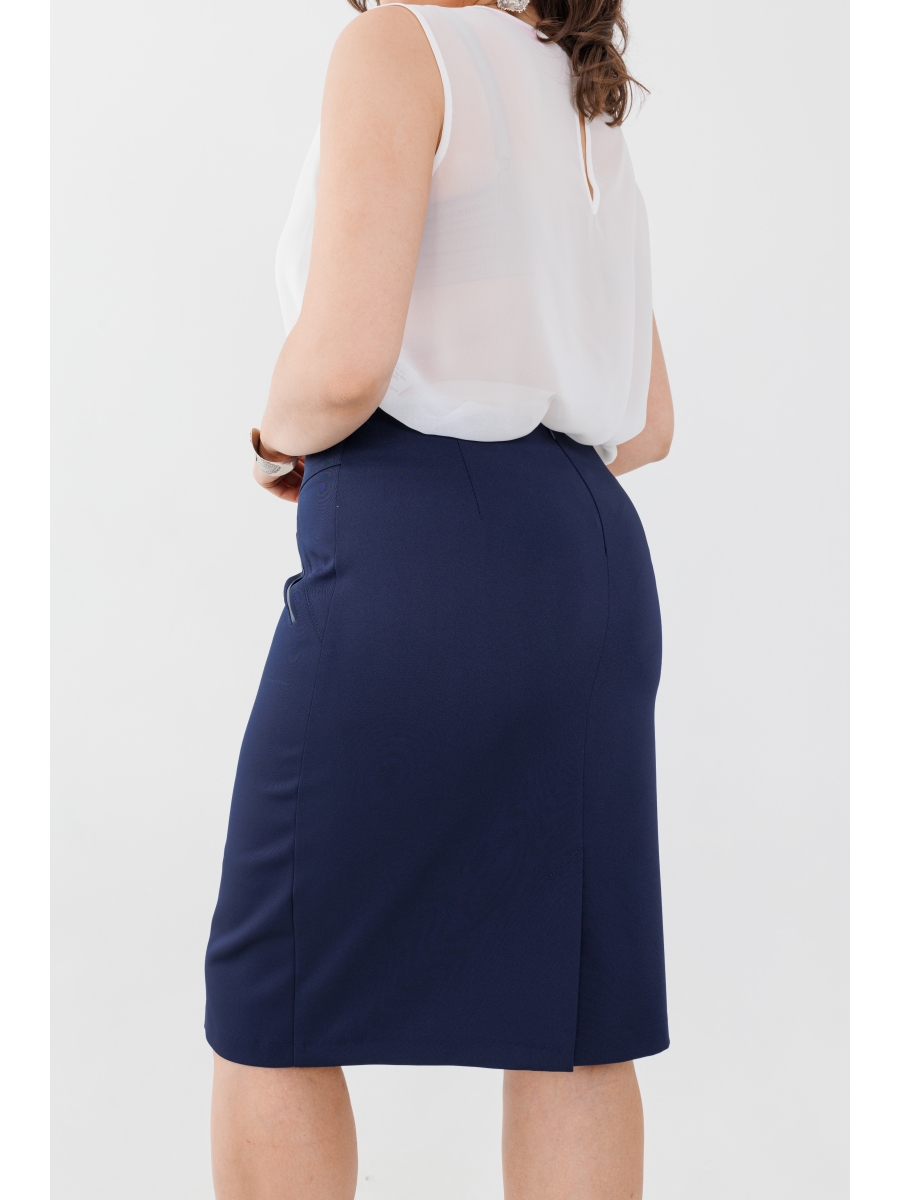 Юбка женская, силуэт карандаш, длина до колена. На подкладке. По переду кокетка, боковые прорезные карманы с контрастными декоративными листочками. По спинке кокетка, для вашего удобства шлица, в среднем шве потайная застежка молния.