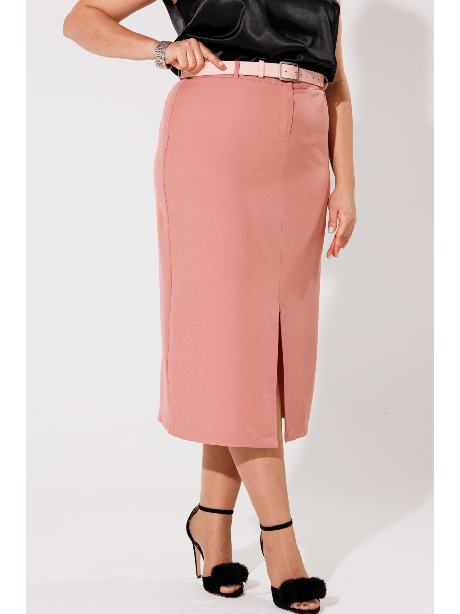 Средний разрез спереди придает образу изысканности, а застежка на молнии обеспечивает удобство надевания. Талиевые вытачки по спинке и притачной пояс с пуговицей создают идеальную посадку, подчеркивающую фигуру.
