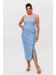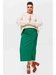 Джинсовые болты спереди позволяют регулировать длину выреза, добавляя образу уникальность и удобство. Два кармана сзади не только придают юбке стильный вид, но и обеспечивают функциональность.