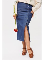 Кнопки спереди позволяют регулировать длину выреза, добавляя образу уникальность и удобство. Два кармана сзади не только придают юбке стильный вид, но и обеспечивают функциональность.