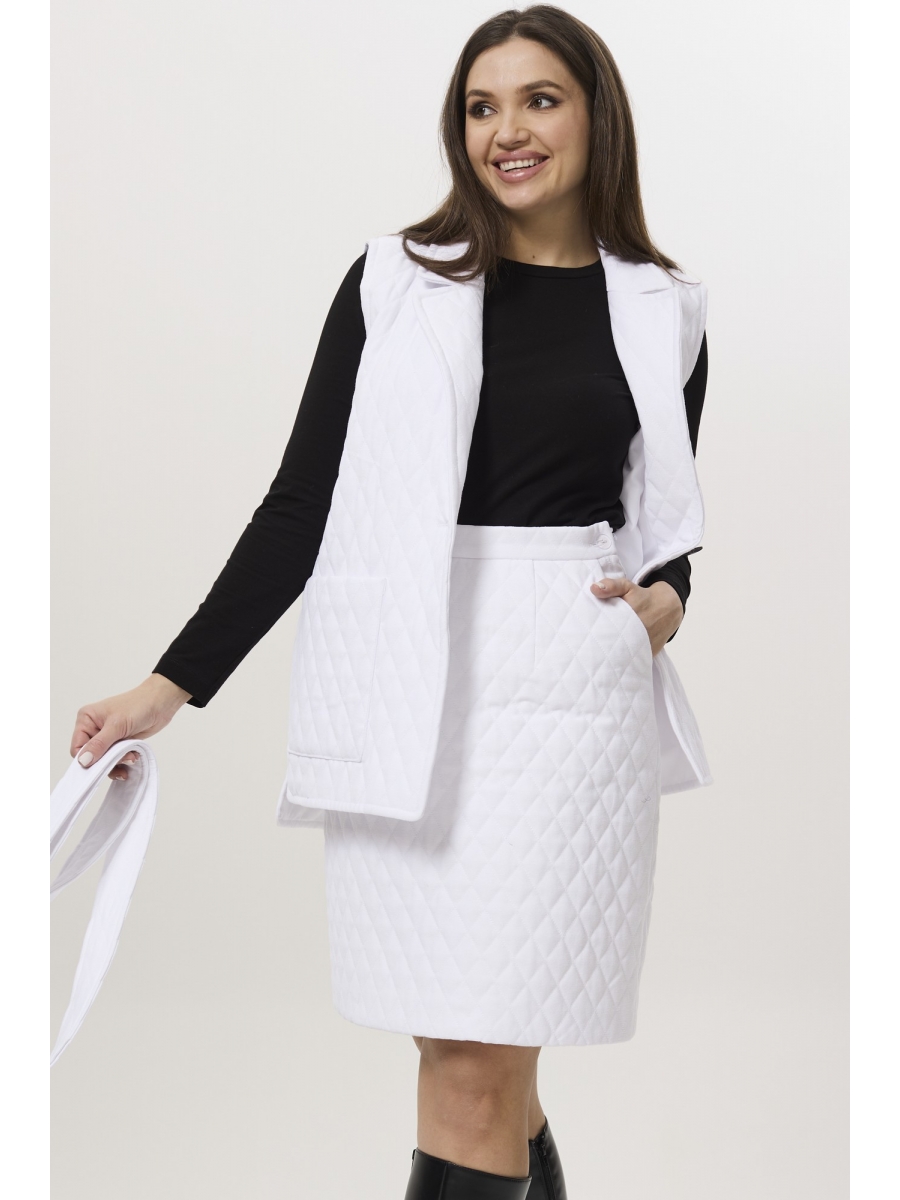 Юбка будет идеально смотреться с нашим жилетом 1066 (на фото) или оба изделия можно купить костюмом 3039.