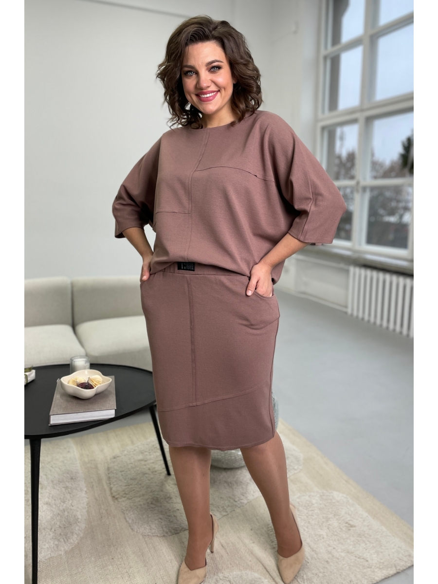 Юбка женская прямого силуэта из трикотажной ткани.По переду расположены карманы с настрочными швами с открытыми срезами. Задняя половинка юбки со средним швом ,заканчивающимся разрезом,какеткой и накладными карманами. Верх юбки оформлен поясом ,в пояс вставлена резинка.