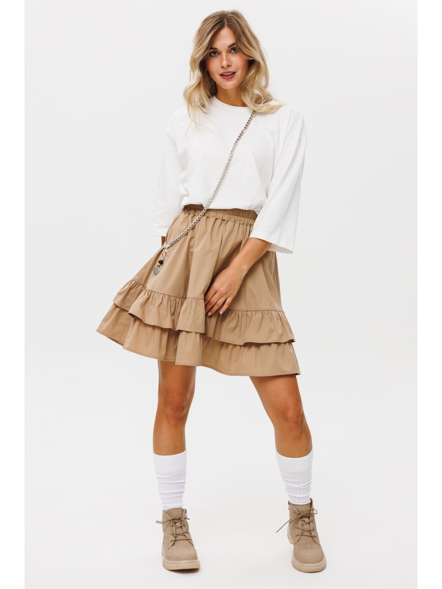 Юбка женская текстильная с воланами расширенная к низу. Верх юбки обработан поясом с резинкой.