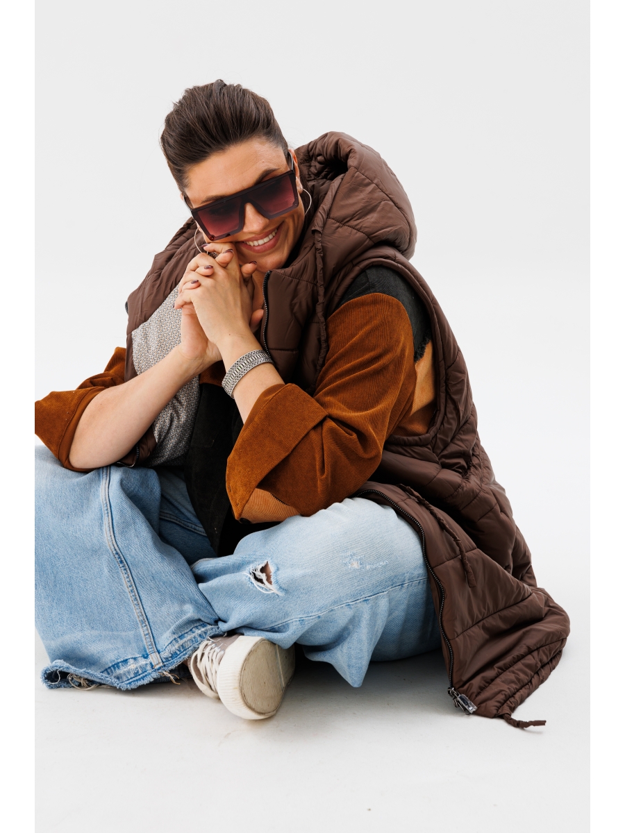 Удлинённый жилет из невесомой стёганой болоньи от Анелли.