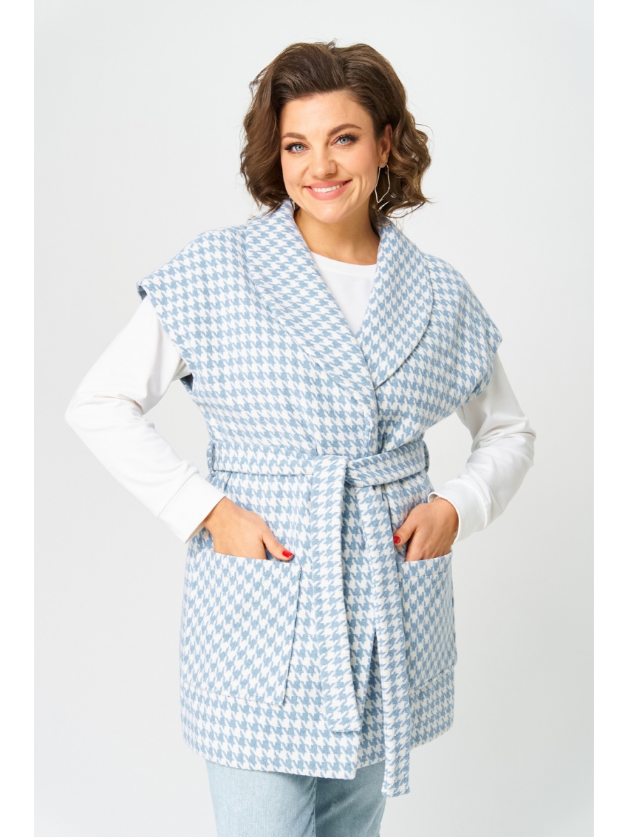 Оформить заказ →Жилет женский свободного прямого силуэта со спущенной линией плеча, на подкладке. Жилет без застежки, с цельнокроеным шалевым воротником. По переду с накладными карманами. По линии талии пояс, подчеркнет талию.