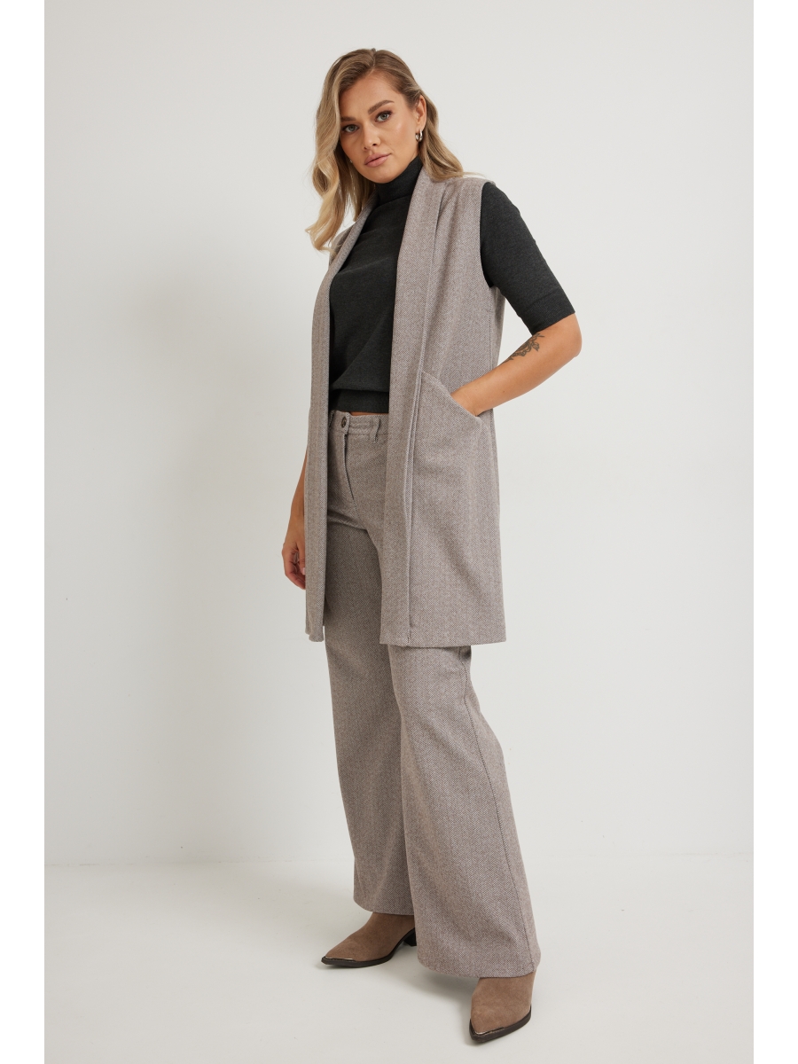 Жилет из мягкой приятной ткани ""ёлочка"" осенне-зимнего ассортимента. Жилет свободного прямого кроя с большими внутренними карманами по переду. Без застёжки. Хорошо подходит к брюкам м1265 коричневая ""ёлочка"".
