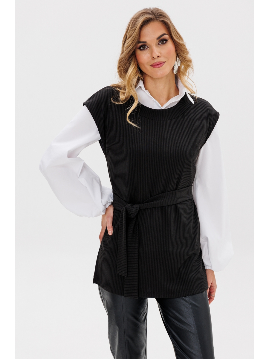 Жилетка женская из трикотажной ткани ""лапша"". В боковых швах расположены разрезы. Пояс входит в комплект.