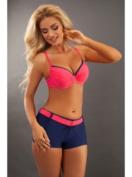 Оформить заказ →ВНИМАНИЕ!!!! Указан Европейский размер!!!!! Европейский размер 44 соответствует российскому размеру 50!!!! Реальные замеры изделия : ОГ (под грудью) - 76см, ОТ - 82см. Раздельный купальник Remia темно-синего цвета с формованной чашкой на косточках с вкладышами push-up. Бретели регулируются по длине, пластиковая застежка на спине не регулируется. Плавки декорированы ярким принтом и бантиком.